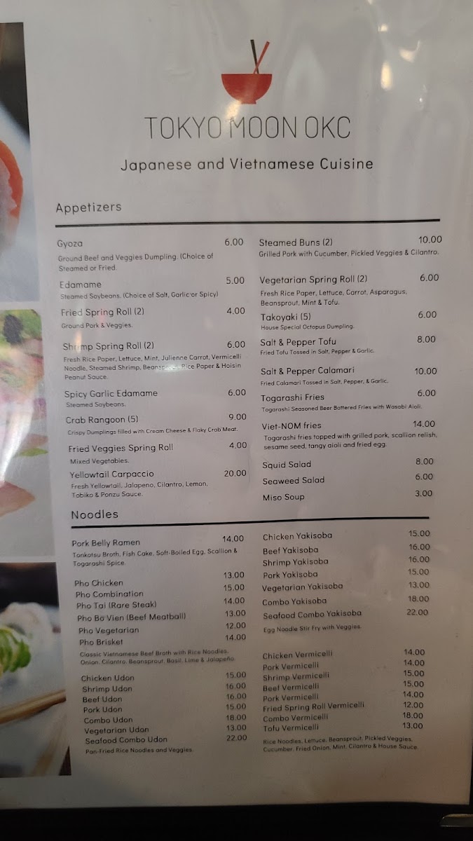 Positive reviews highlight the inviting atmosphere and attentive service, making every dining experience memorable. With delightful food and a welcoming vibe, Tokyo Moon OKC is more than just a meal; it’s a culinary adventure waiting to unfold.