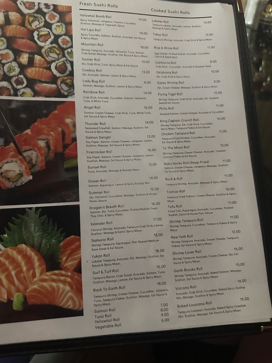 California Roll, Hawaiian Roll, San Francisco Roll, Oklahoma Roll, New York Roll, Philly Roll, and Seaweed Salad.